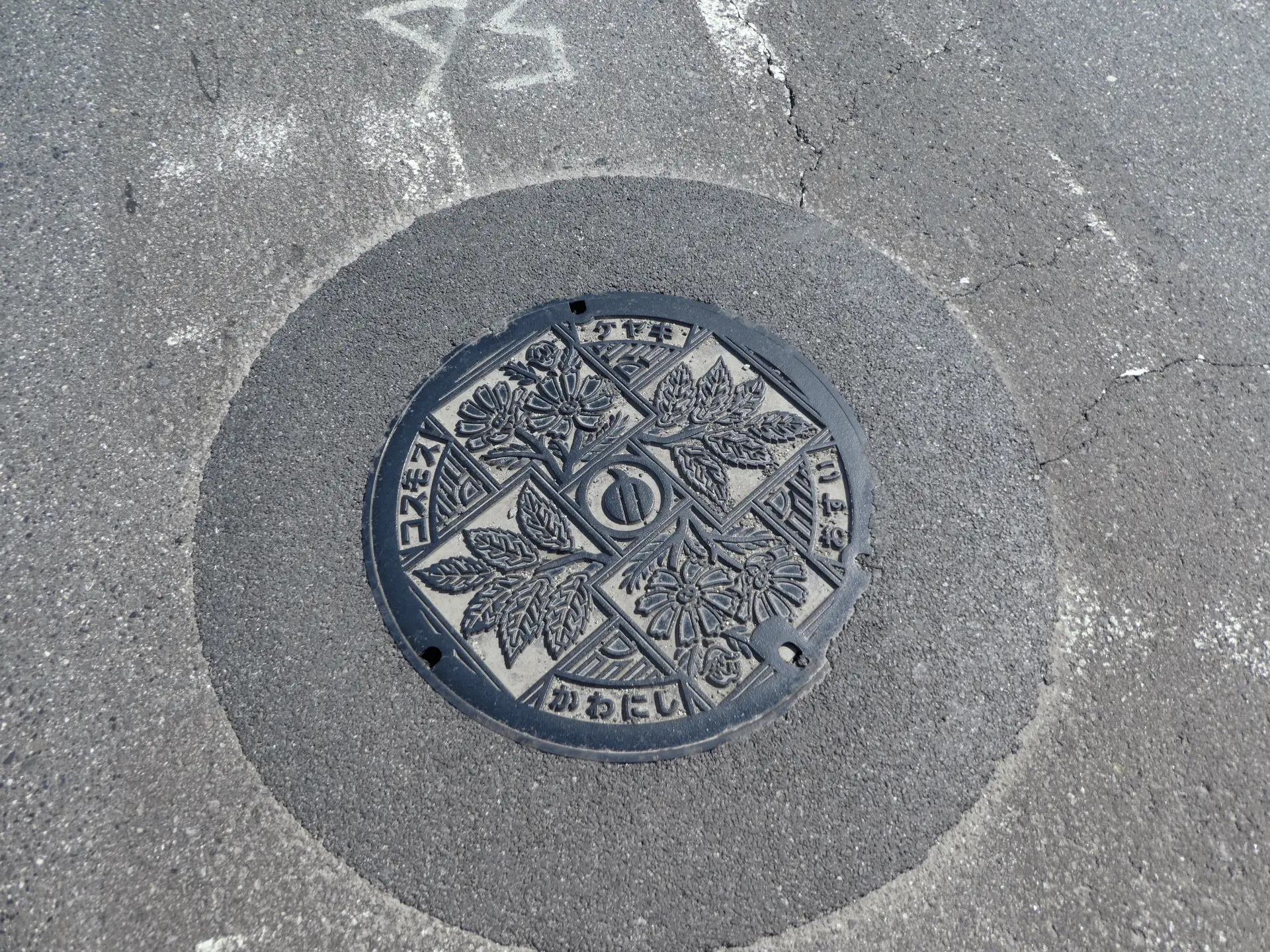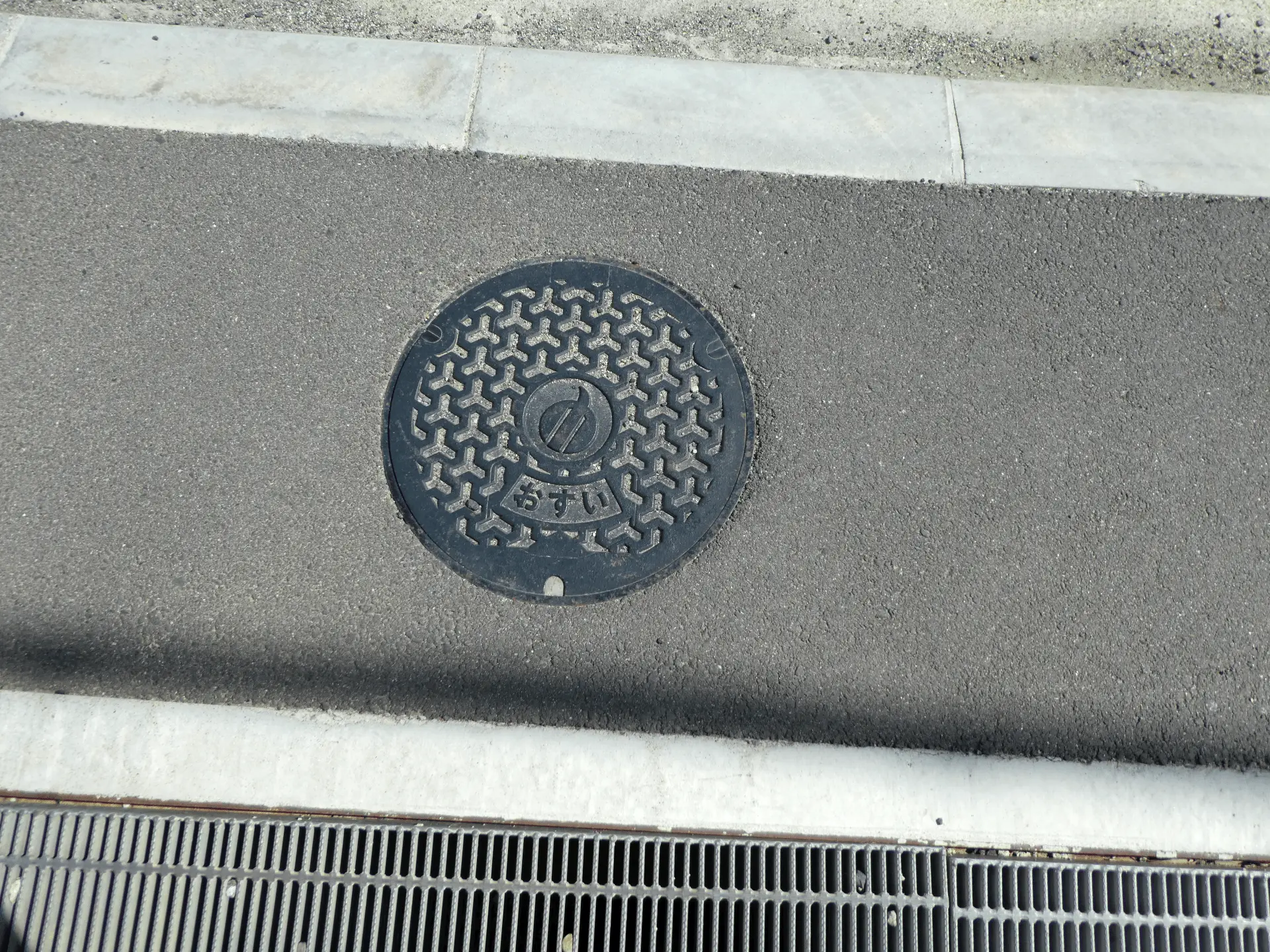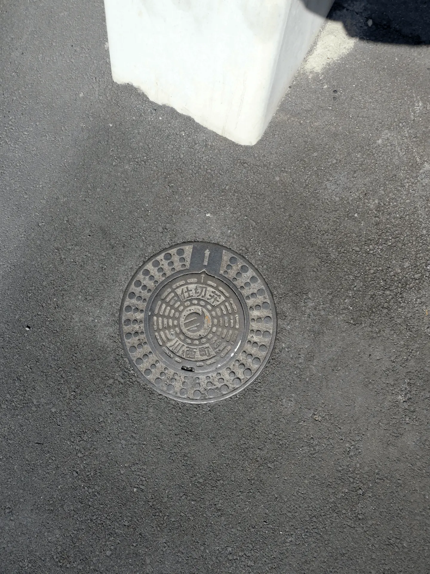道路工事現場に紛れ込んだ淡路島の三原町(合併して南あわじ市)のマンホール。